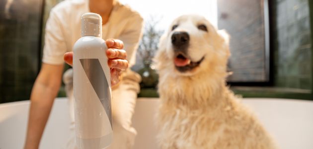 - After shampooing your dog, pour the ACV mixture over their coat as a rinse.