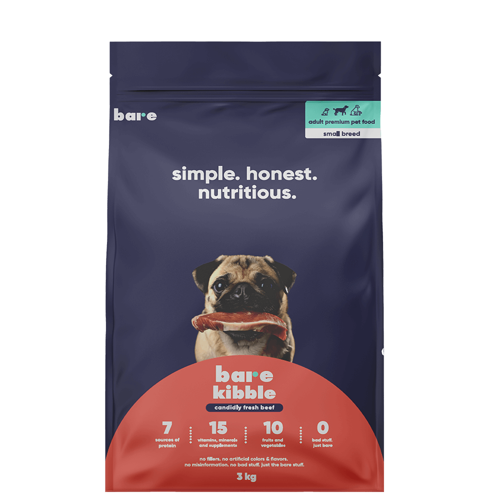 Our kibble was manufactured and formulated by a team of over 20 animal nutritionists and vets from Europe. At Bare, we believe in simple, honest, and nutritious pet food. We’re here to bring transparency to an industry plagued with misleading practices. Our goal is to prioritize the health and well-being of pets by delivering innovative products with the highest quality of nutrition. We’re a modern brand, empowering pet parents through honest education and making premium pet care accessible.