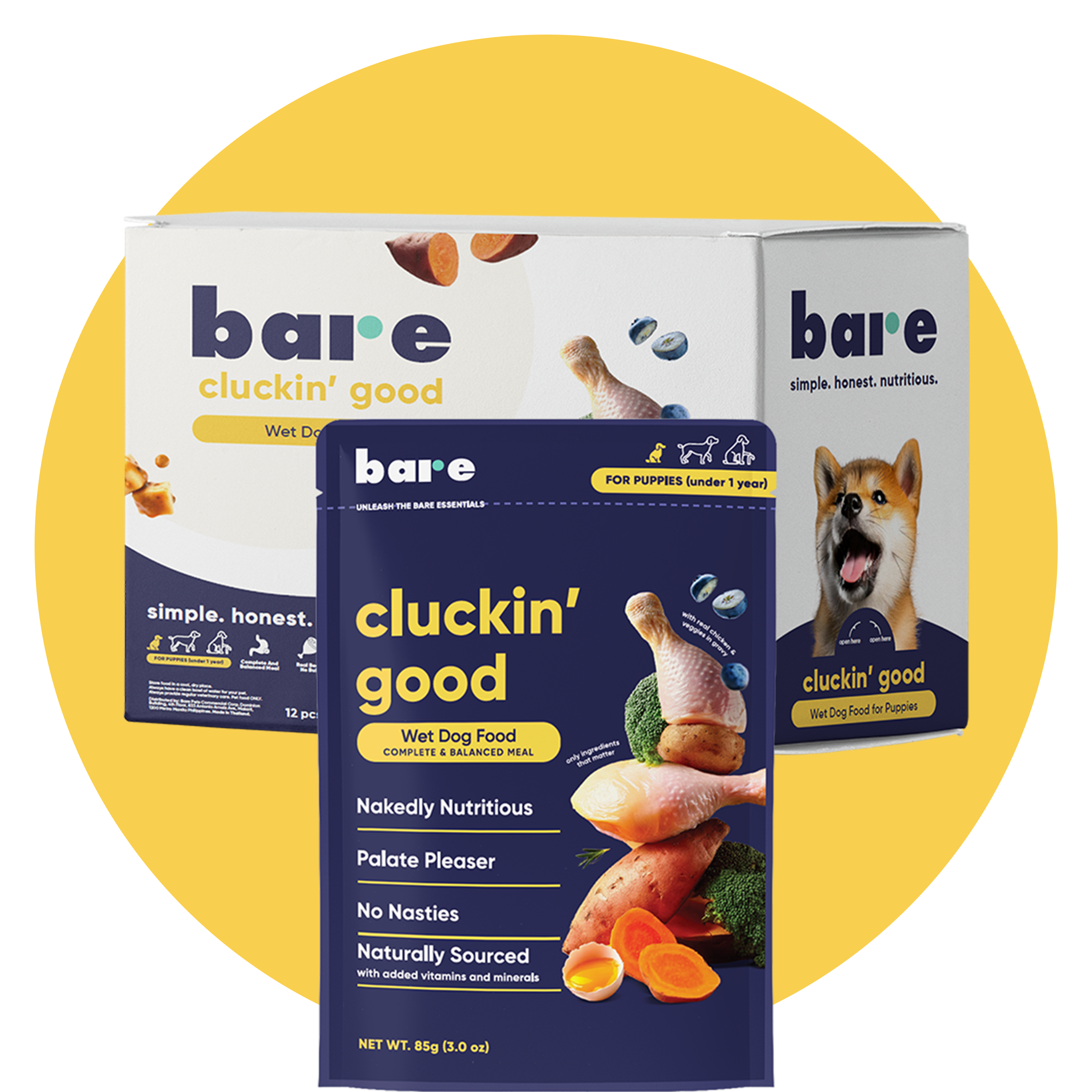 For growing puppies, Bare’s Cluckin' Good Puppy Wet Food offers the ideal start to life with a gentle, balanced, and flavorful meal that’s easy to digest. Made with quality chicken, vegetables, and superfoods, this recipe delivers the essential nutrients puppies need for strong development and boundless energy.