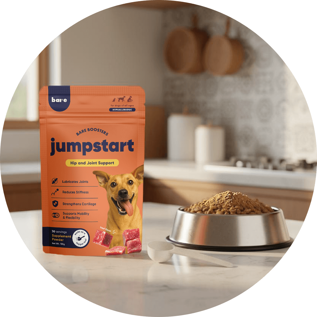 Some pet parents see increased activity and less stiffness in as little as 2 to 4 weeks of adding this Bare Boosters staple to their routine.