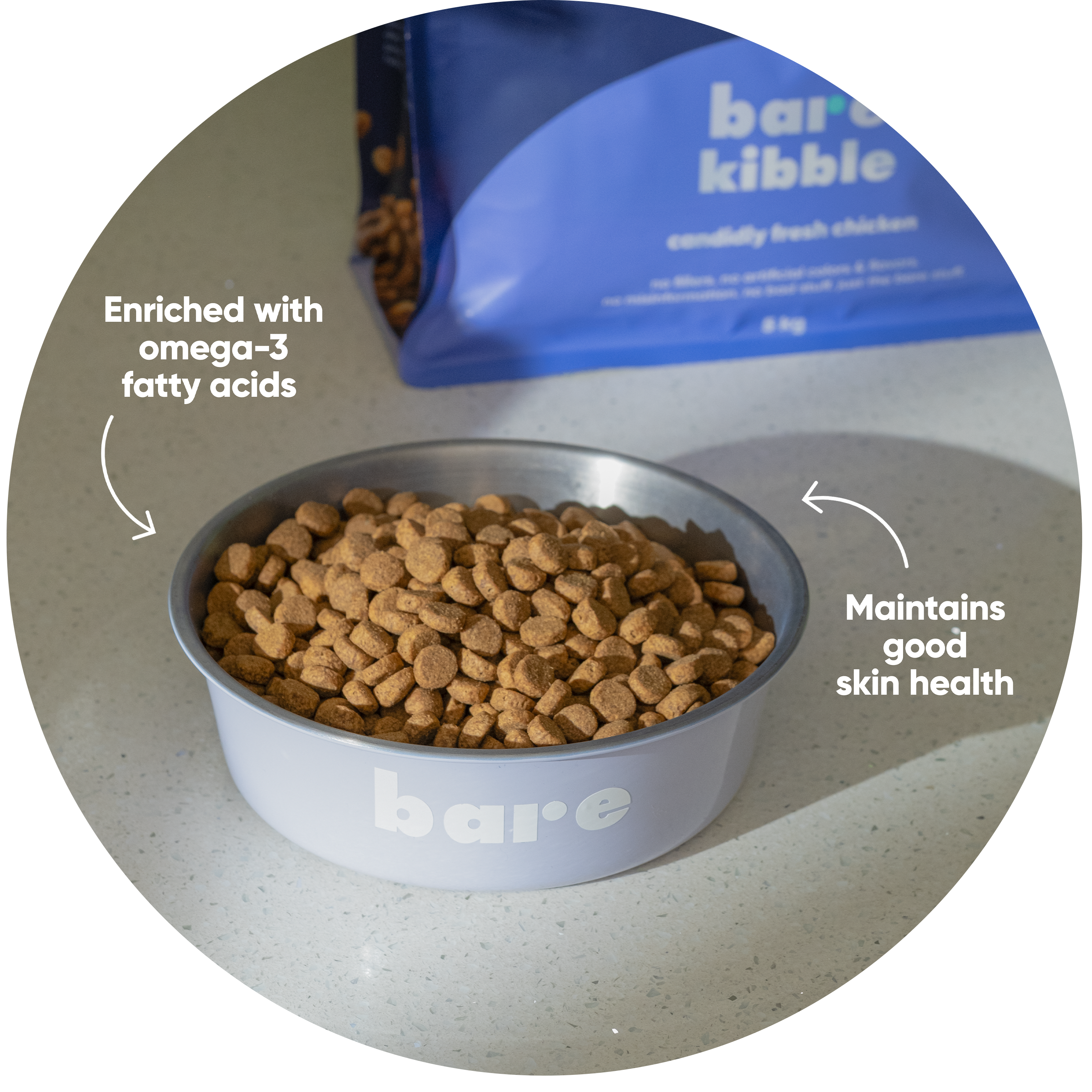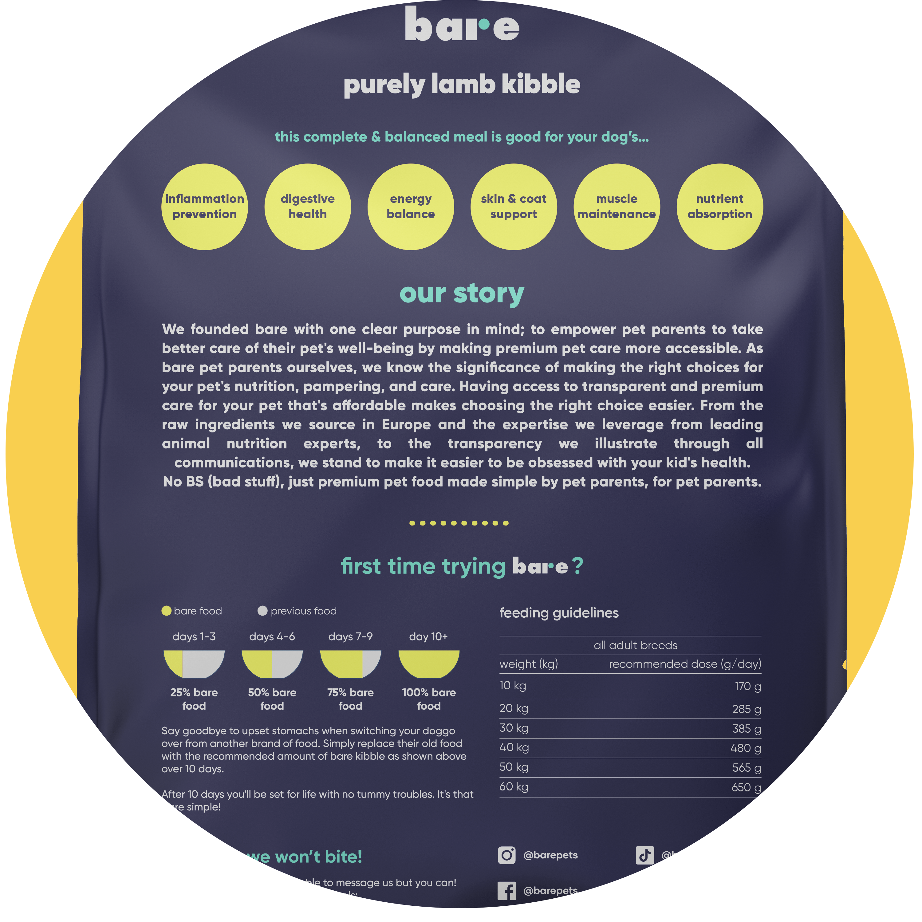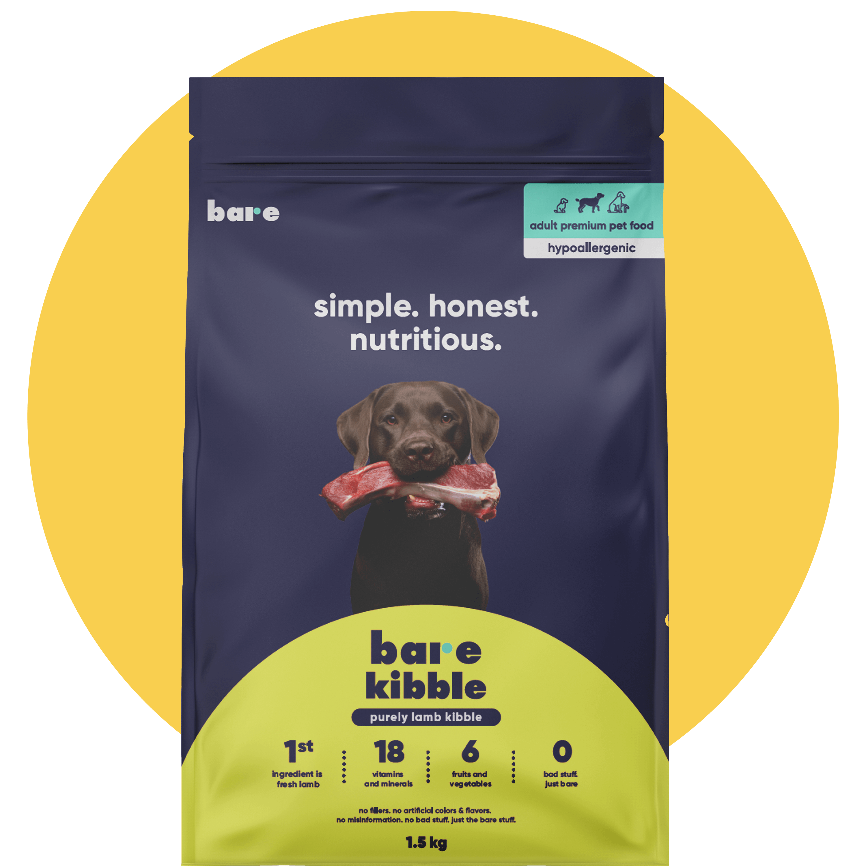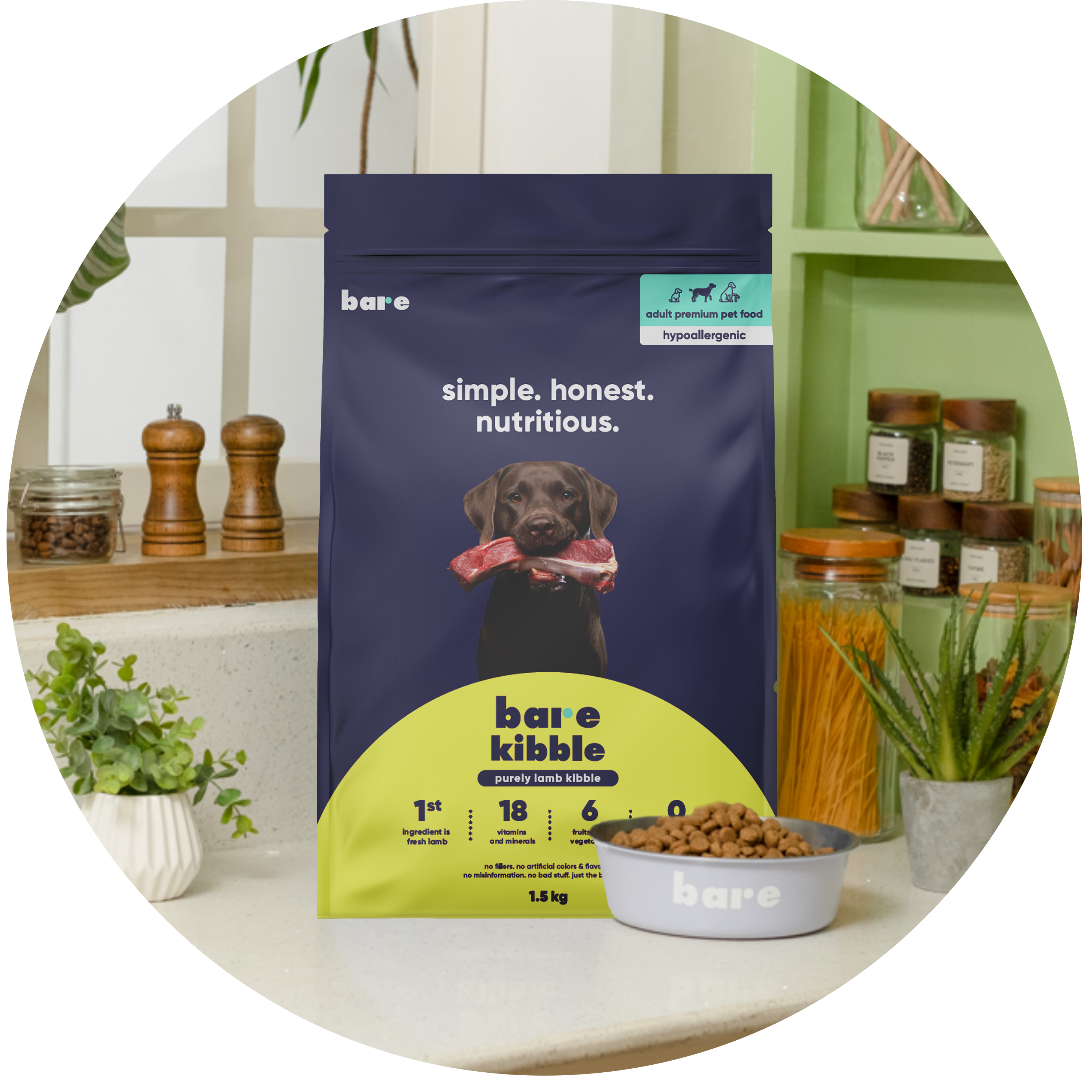 Our kibble was manufactured and formulated by a team of over 20 animal nutritionists and vets from Europe. At Bare, we believe in simple, honest, and nutritious pet food. We’re here to bring transparency to an industry plagued with misleading practices. Our goal is to prioritize the health and well-being of pets by delivering innovative products with the highest quality of nutrition. We’re a modern brand, empowering pet parents through honest education and making premium pet care accessible.